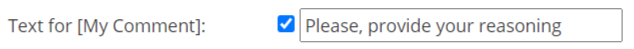 There are settings that update text data such as labels, text. For these settings it is necessary to flag that a change needs to be applied even if the textbox is empty, otherwise we won't be able to apply blank text to them. For this, a checkbox prefix is introduced before the textbox which needs to be checked if we want the changes to be applied. For instance the "Text for [My Comment]" as shown below: