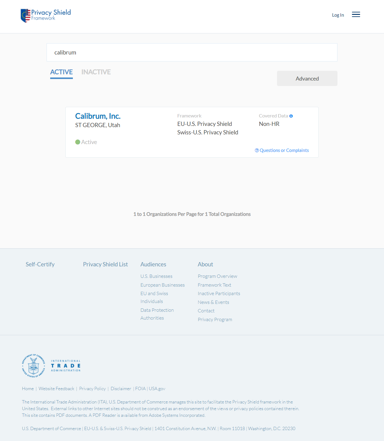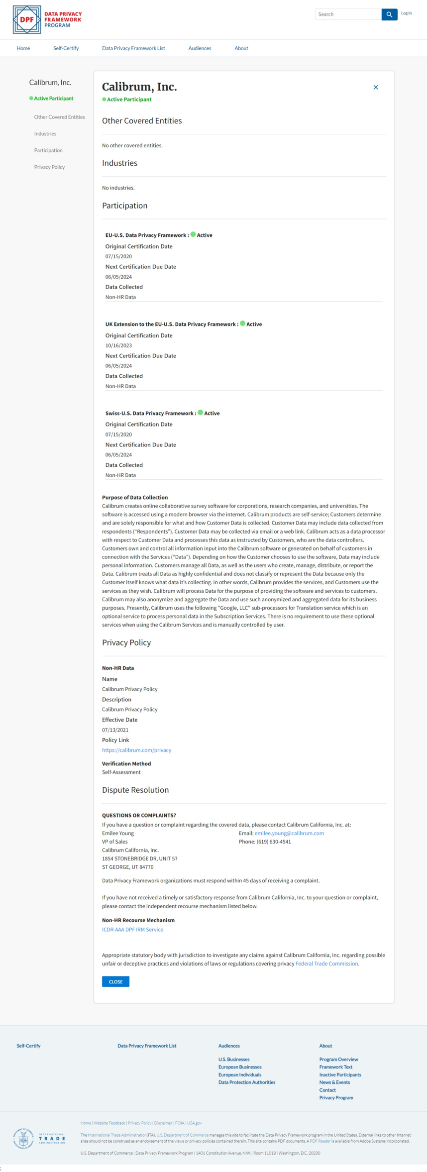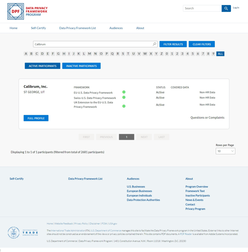 About Calibrum Data Privacy Framework Program (DPF) Compliance