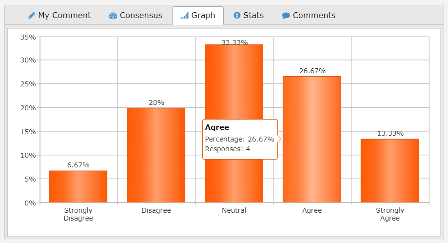 Clicking on it will display a popup window to display consensus by a cohorts. There are two different ways the stakeholder analysis can be displayed: either via a popup window, or an embedded window.
