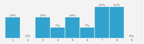 Chances are you will need to fill out questions of different types (radio button, checkbox, ranking, scale, matrix and so on). While has a different purpose and may look different, the Question Analytics widget right under the question will be similar. The Analytics widget may contain one or more tabs: