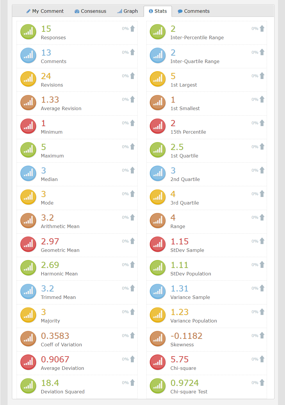 Surveylet can display 30 different statistics under the Stats analytics tab such as median, mode, mean, and so on. While explaining and teaching you all the statistical methods used by Surveylet is out of the scope of this introduction, you may want to check out this webpage as a beginners guide tutorial on statistics.