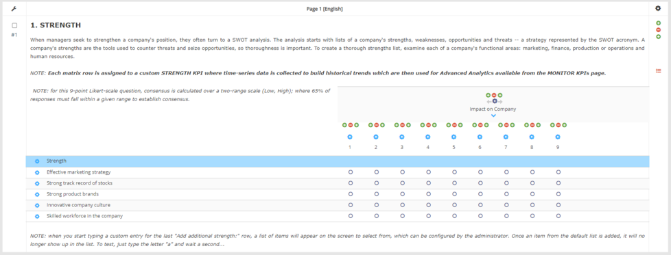 Column Choices (Scale points): each Matrix column can have its own data type. Depending on the data type, a matrix column may have one or more choices to chose from. These are the choice you want respondents to choose for each statement. Scale points listed over the top. E.g., Very satisfied, slightly satisfied, neither satisfied nor dissatisfied, and so on. The number of scale points can also be adjusted in the editing pane. When you set your matrix table to Single Answer, you can choose one scale point for every statement. This is the same even if you transpose the table so that statements become columns and scale points become rows.
