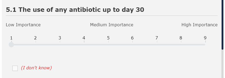 In a slider, the [I don't know] option will be displayed under the slider. The color of this option is red by default which you can override in the survey's