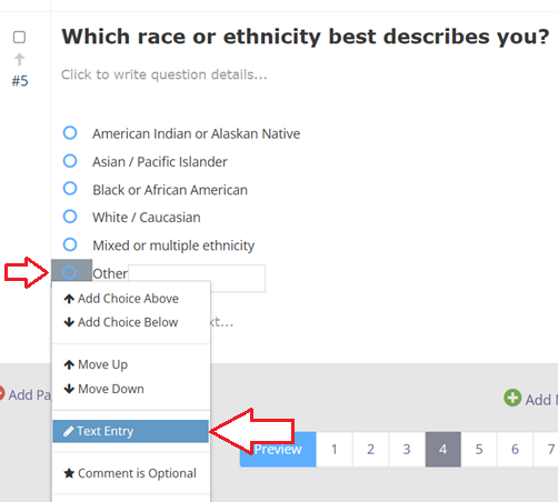 Adaptive question is a question whose list of choices are not fixed and new choices can be appended by the survey participants themselves with the use of a text choice ([Other, please specify") option. To set a choice as text choice, in the Question Designer, just select the "Text Entry" item in the choice menu which will show if you click on the blue circle in front of the choice title as shown below. To hide that textbox, you will need to do the same which will toggle its visibility (hide/show) for you.