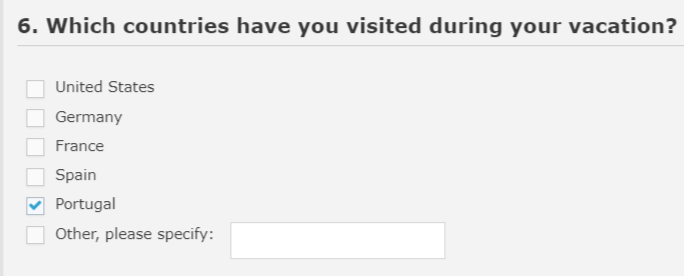 a) Panelist first checks the checkbox in front of the [Other, please specify] text choice and enters a text in the textbox: