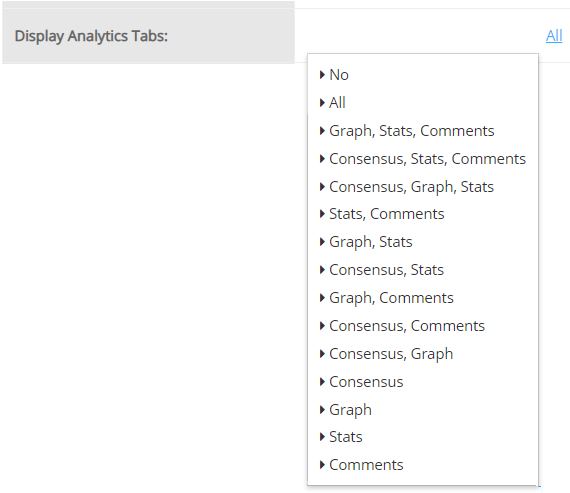 There are 4 different analytics tabs that can be shows to the survey participant under the question: