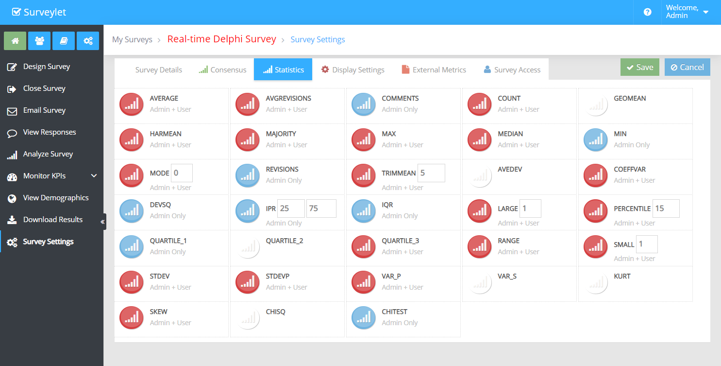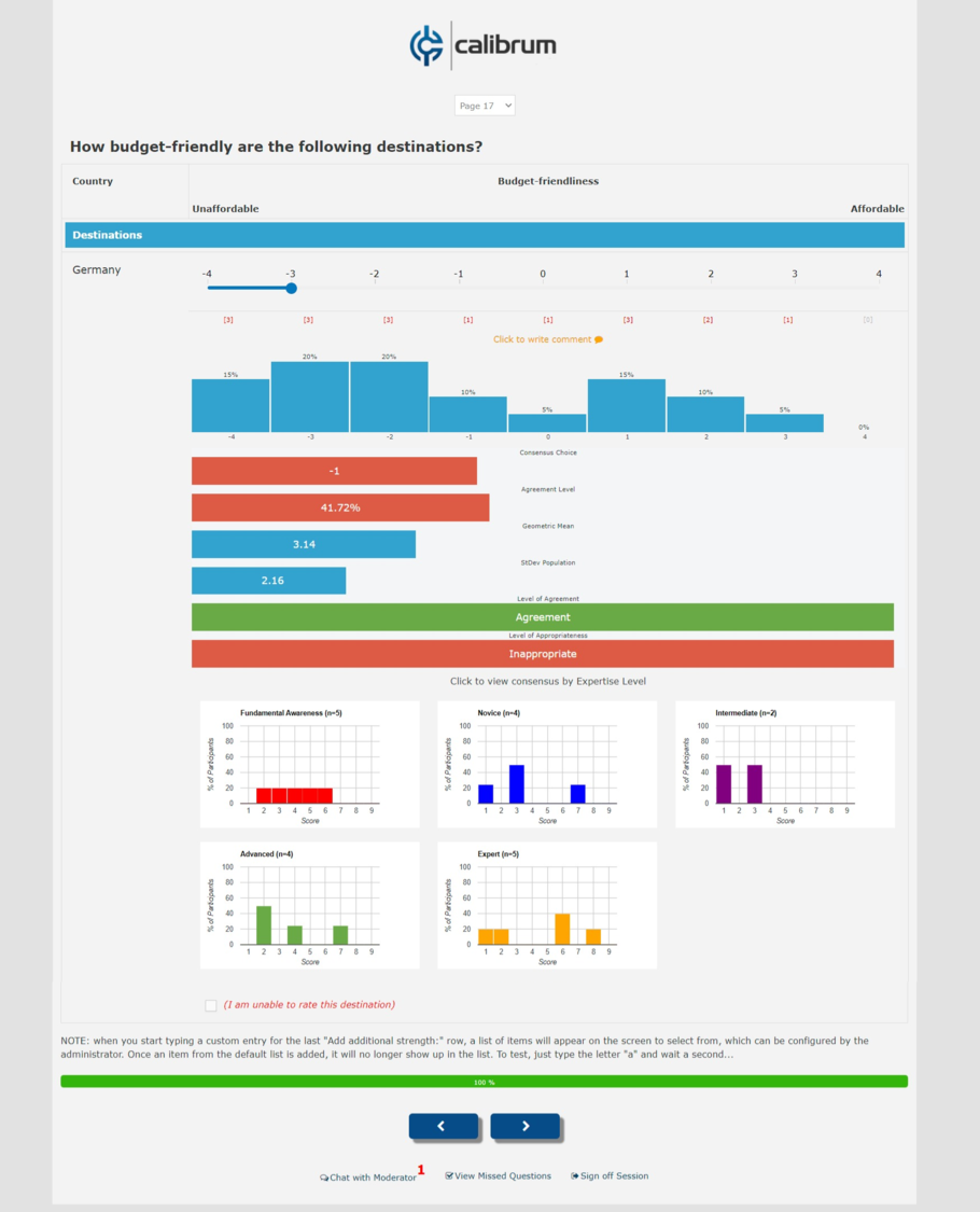 The statistical measure to calculate group stability (level of agreement) for question. Stability Measure is ignored for Range Consensus.