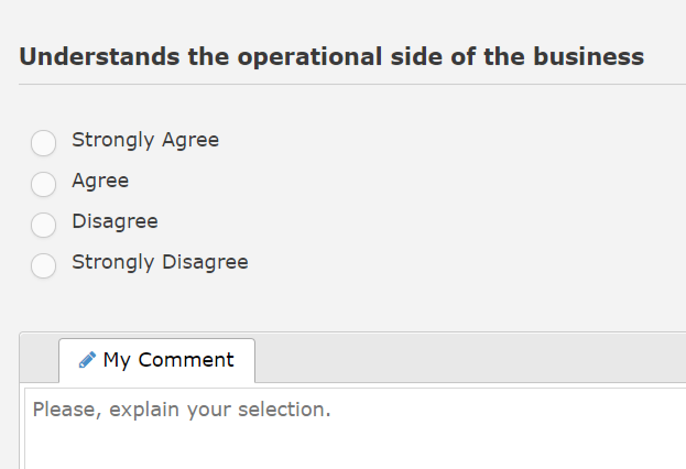 "Yes": the My Comment box will be displayed (and it will be optional for panelist to fill out My Comment).