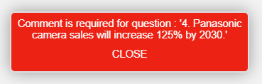 If panelist selects an option that requires comment, Surveylet will display the following error message:
