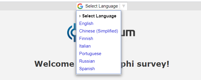 List the languages that will be displayed to your panelists on top of the survey pages if their Google translate option is switched on. Use this when you do not want to manually add translated content for these languages. If, in your survey designer, you added any content in the language selected by the panelist from the Google Translate language selector, then those will not be translated into the same language.
