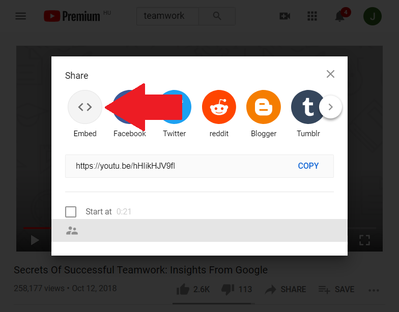 3.) The HTML content for video embedding is displayed, which you need to copy.