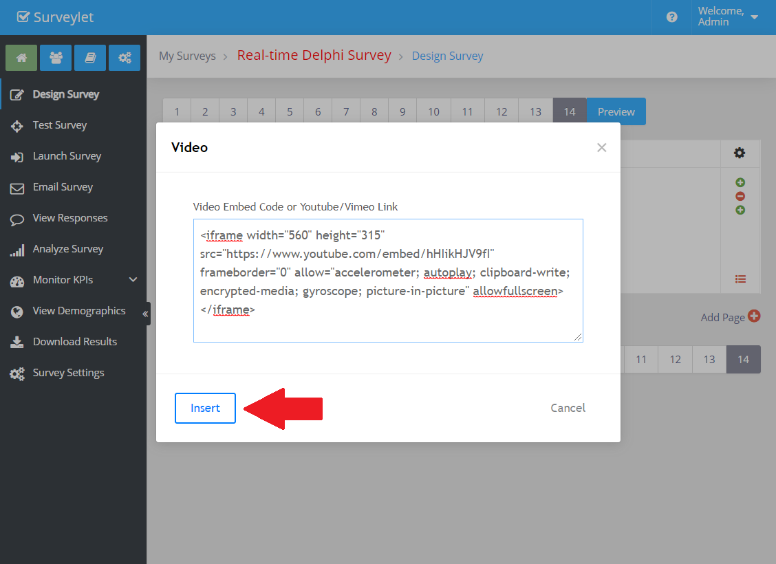 You may want to add introduction or explanatory Youtube, Vimeo videos to your survey to spice up its content and make it more visually appealing and interesting to your panelists. Videos can also make the survey experience easier and the surveying process quicker. In this example below, we will review how to add a Youtube video.